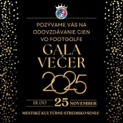 GALA VEČER SFGA 2025 – Slávnostné vyhlásenie footgolfovej sezóny V utorok 25. novembra 2025 o 18:00 hod. sa v kinosále Mestského kultúrneho strediska (MsKS) v Senci uskutoční slávnostné vyhlásenie výsledkov footgolfovej sezóny 2025 – ...